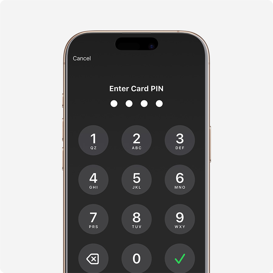 For customers needing visual or other assistance, accessibility options are built into Tap to Pay on iPhone to help them securely enter PIN information. Audible instructions guide customers to draw their PIN on the screen or tap the screen to indicate each digit—tapping once for 1, twice for 2, and so on. To submit their PIN, they simply swipe right with two fingers.